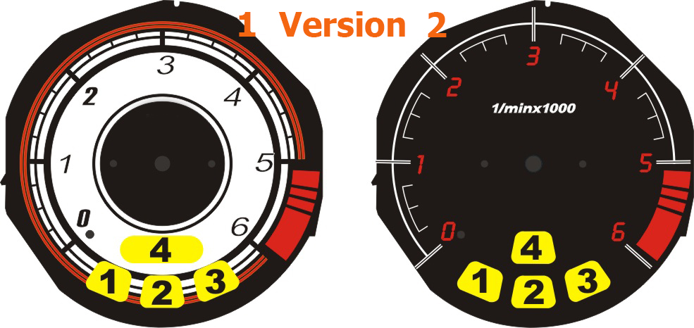 - Оборотомер: 6000 или 7000 оборота.