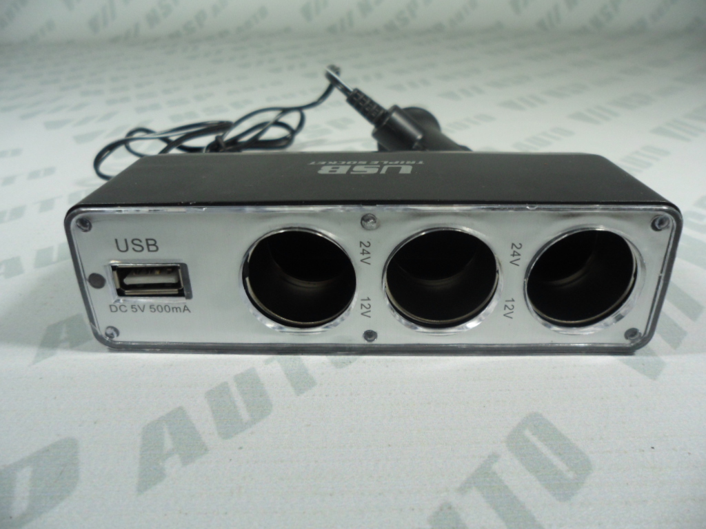 Разклонител за запалка с три входa и един USB изхода