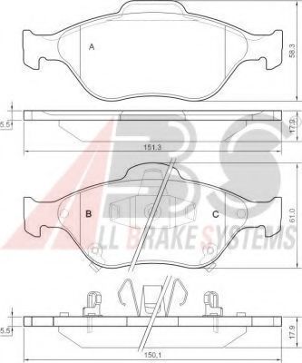 комплект спирачно феродо, дискови спирачки A.B.S.