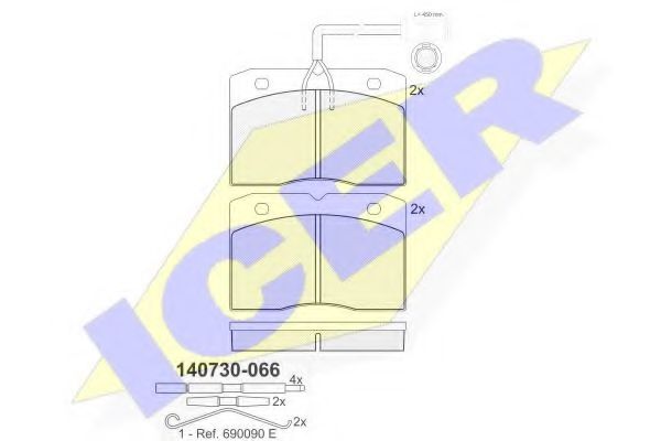 комплект спирачно феродо, дискови спирачки ICER