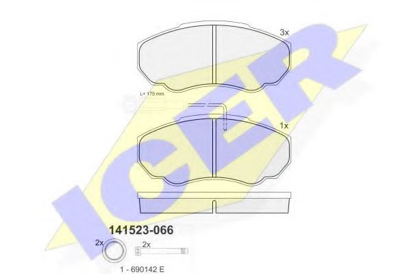 комплект спирачно феродо, дискови спирачки ICER