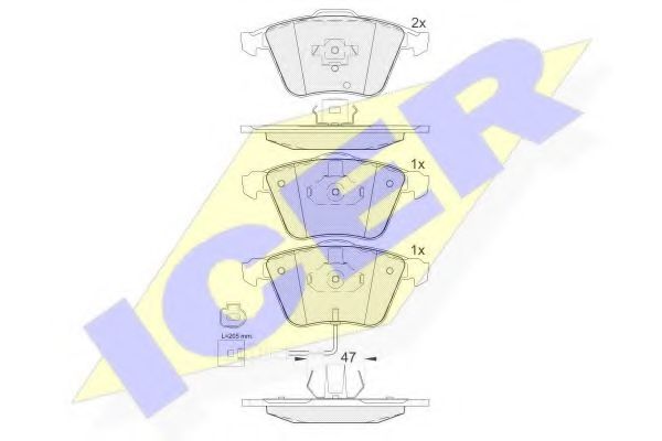 комплект спирачно феродо, дискови спирачки ICER