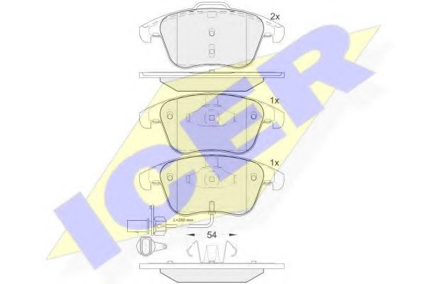 комплект спирачно феродо, дискови спирачки ICER