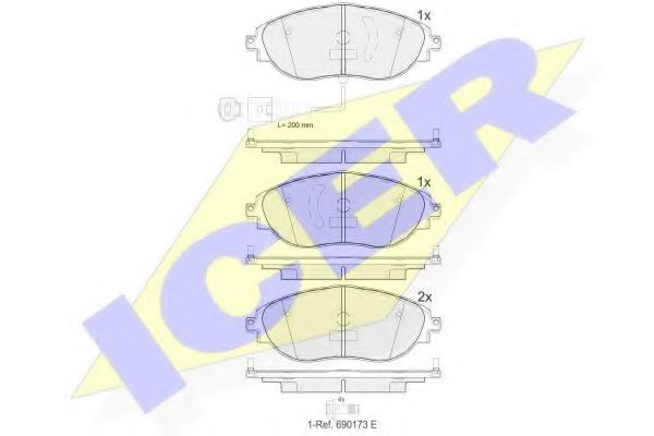 комплект спирачно феродо, дискови спирачки ICER