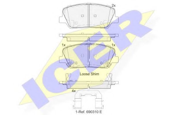 комплект спирачно феродо, дискови спирачки ICER
