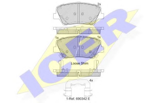 комплект спирачно феродо, дискови спирачки ICER