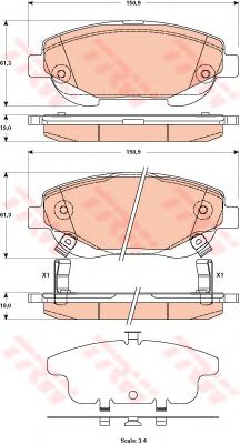 комплект спирачно феродо, дискови спирачки TRW
