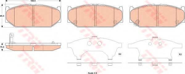 комплект спирачно феродо, дискови спирачки TRW