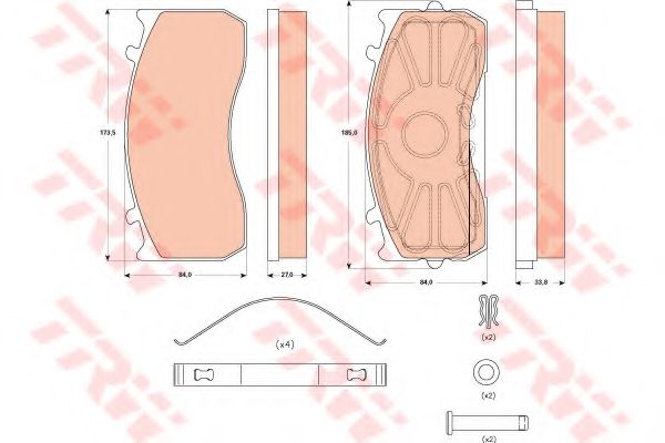 комплект спирачно феродо, дискови спирачки TRW