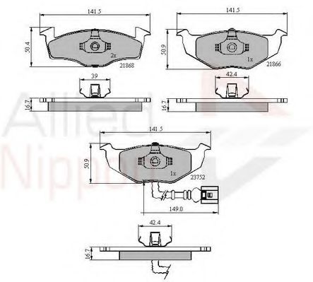 комплект спирачно феродо, дискови спирачки COMLINE