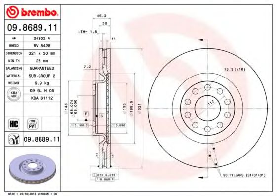 | дебелина на спирачния диск | 29,9 mm |