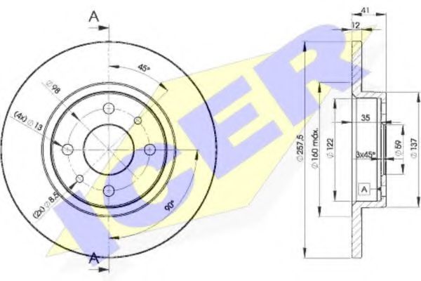 | диаметър | 257,5 mm |