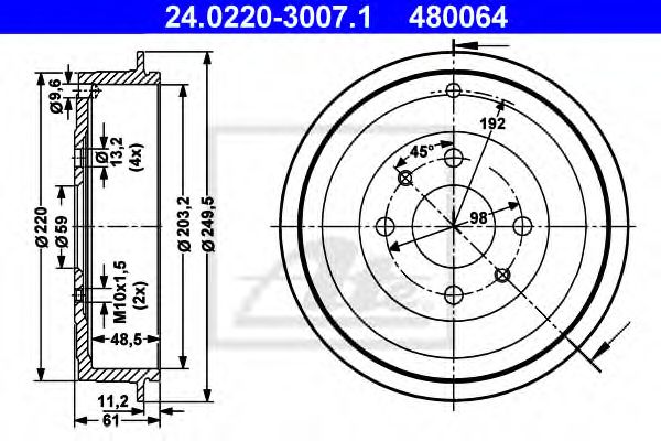 | диаметър на барабана | 203,0 |