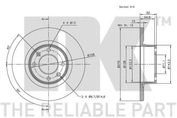 | дебелина на спирачния диск | 14 mm |