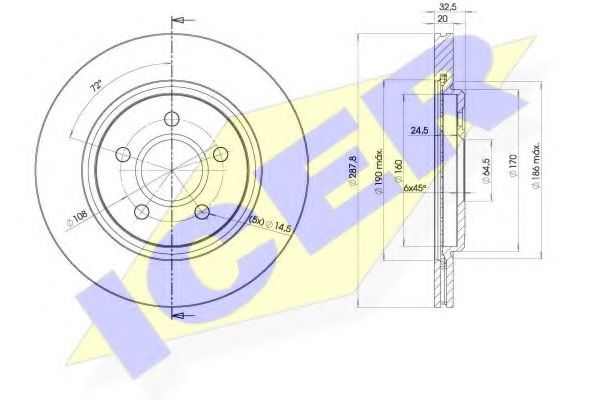 | кръг на дупките | 64,5 mm |
