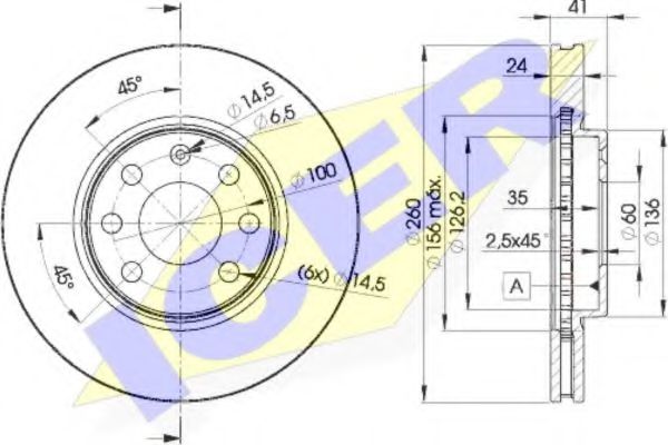 вид на спирачния диск : вентилиран