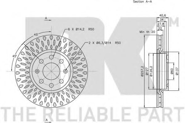 вид на спирачния дискнадупчен/ вътр. вентилиран