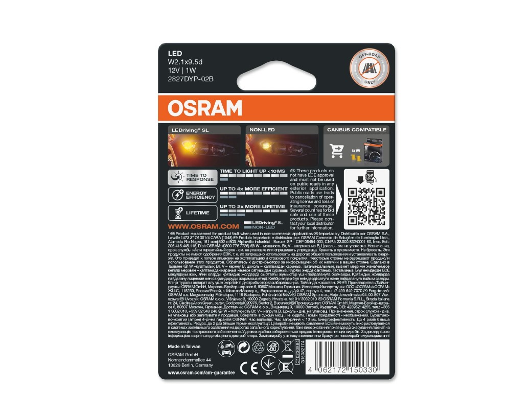 ДИОДНИ КРУШКИ OSRAM W5W AMBER 12V