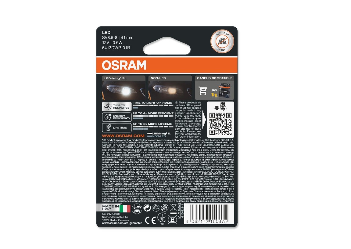 ДИОДНИ КРУШКИ OSRAM C5W 41mm 6000K 12V