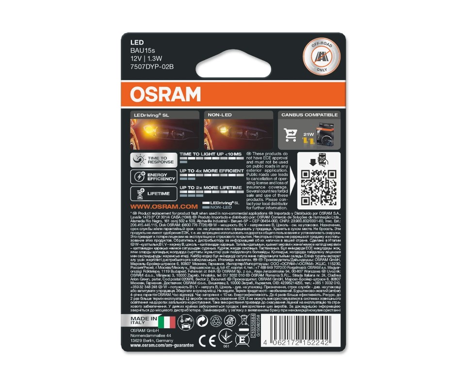 ДИОДНИ КРУШКИ OSRAM PY21W AMBER 12V