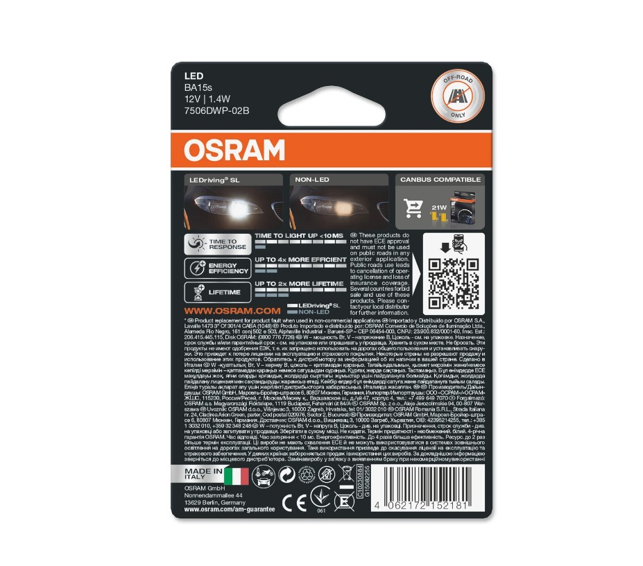 ДИОДНИ КРУШКИ OSRAM P21W 12V