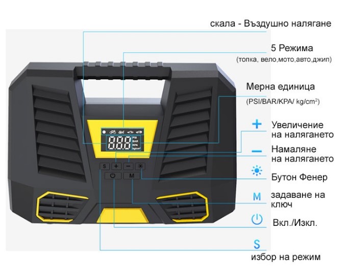 Компресор дигитален за гуми 12V - 1808-1