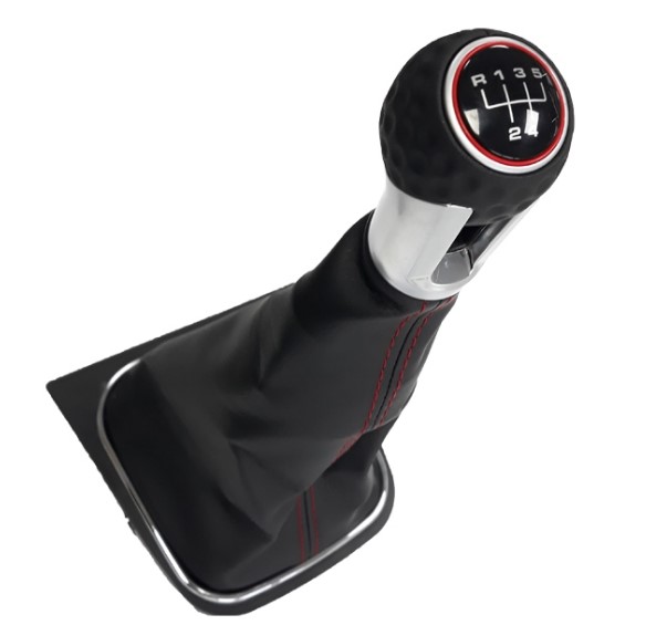 Топка за скоростен лост с маншон подходяща за VW Golf GTI 03-12 с 5 скорости - червен конец